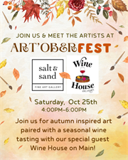 Celebrate the beauty of fall with us at Art’Oberfest, a seasonal art showcase and wine tasting event in collaboration with Wine House on Maine. Enjoy light snacks, meet the artists, and explore a vibrant collection of fall-inspired artwork by our local gallery artists.